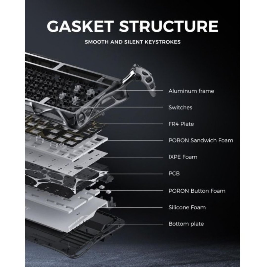 • Premium typing experience with gasket mount design – Experience a balanced and comfortable typing experience thanks to the Gasket-Mount FR4 plate and 5 layers of sound-absorbing foam. The 75% compact 79-key layout and a programmable control button maximizes functionality while saving desk space – ideal for gamers, frequent writers and programmers.